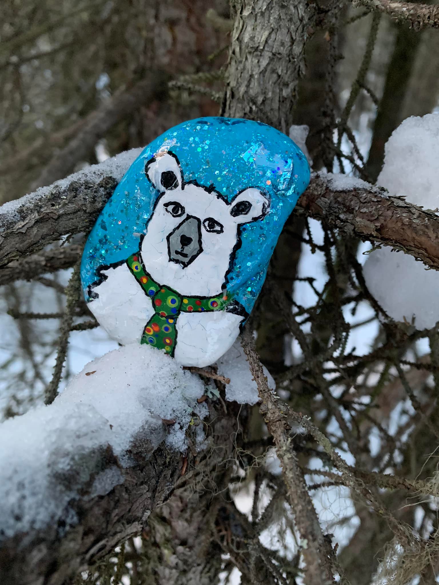 i had this sledding one for some time. i finally left it out there at Ruths. most of the rocks are leaving super fast. combo of folks who come with empty pockets and leave with full ones, many rockers are just running low on rocks to paint. also in winter the local trails are just more busy.